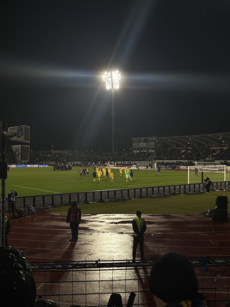 Am Spieltag machten wir uns um 10:00 Uhr am Fanprojekt auf Richtung Ulm. Nach rund vier Stunden Fahrt kamen wir dort an und begaben uns direkt zum Stadion. Das Spiel selbst bot leider nur wenig sportliche Highlights. Bei durchgehendem Regen wurden zudem alle Beteiligten ordentlich nass. Am Ende stand ein 1:1-Unentschieden auf der Anzeigetafel.