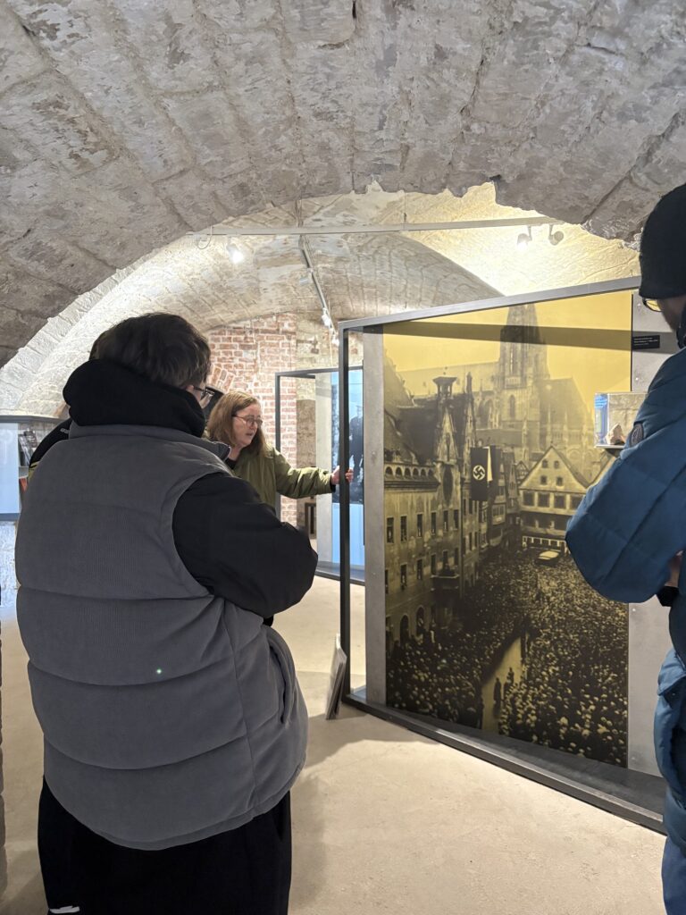 Im Anschluss ging es weiter zur Jugendherberge nach Blaubeuren, wo wir eine Nacht verbrachten. Am nächsten Tag stand mit dem Besuch des DZOK Ulm, einer Gedenkstätte zur Geschichte des Nationalsozialismus und der KZ-Verbrechen, noch ein bildungspolitischer Programmpunkt an. Bei dem Rundgang bekamen die Jugendlichen einen Eindruck von den Verbrechen, die im KZ begangen wurden und von den menschenunwürdigen Bedingungen die vor Ort geherrscht haben.